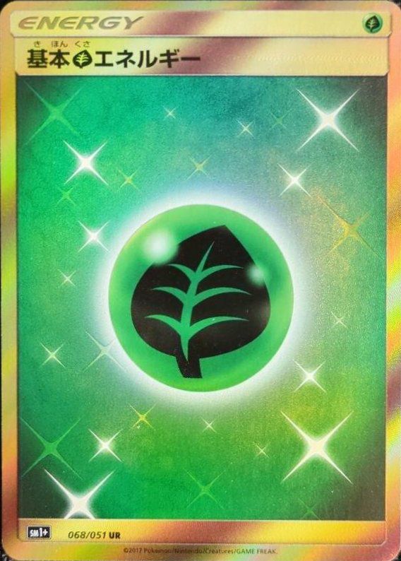 基本草エネルギー(068/051)[UR]は、拡張パック「コレクション サン」に収録されたウルトラレア仕様の基本エネルギーカードです。草タイプのポケモンにエネルギーを供給する際に使用されます。UR(ウルトラレア)仕様のカードは、豪華なホイル加工が施され、特にコレクターから高い人気を集めています。デッキ構築においては、草タイプのポケモンを中心としたデッキで使用されることが多いです。
