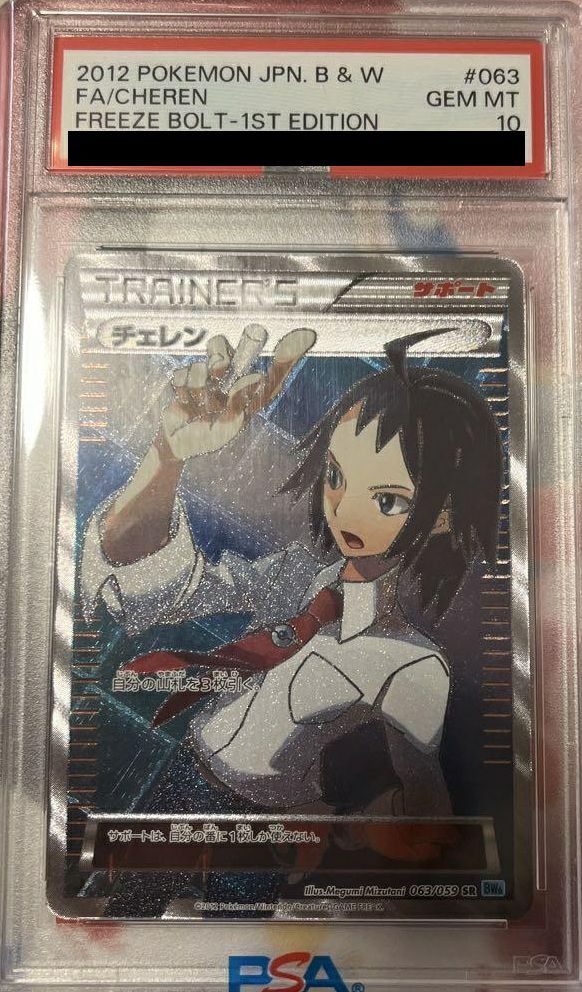 「チェレン」(063/059)は、拡張パック「フリーズボルト」に収録されたスーパーレア(SR)のサポートカードです。このカードを使用すると、自分の山札から3枚引くことができます。シンプルながら手札補充に優れ、多くのデッキで採用されています。SR版のイラストは、チェレンの凛々しい姿が描かれており、コレクターにも人気です。