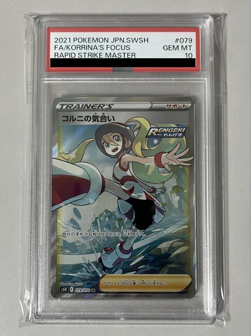 コルニの気合い(079/070)は、拡張パック「連撃マスター」に収録されたスーパーレア(SR)のサポートカードです。このカードを使用すると、自分の手札が6枚になるように山札を引くことができます。手札補充に優れ、特に「連撃」デッキでの安定した展開をサポートします。イラストは秋津たいら氏が担当し、躍動感あふれるコルニの姿が描かれています。