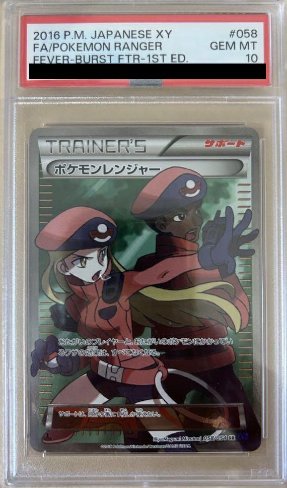 「ポケモンレンジャー」(058/054)は、2016年6月17日発売の拡張パック「冷酷の反逆者」に収録されたスーパーレア(SR)のサポートカードです。このカードは、お互いのプレイヤーとポケモンにかかっているワザの効果をすべてなくす効果を持ち、特定の妨害効果を解除するのに有効です。イラストは水谷恵氏が担当しており、ポケモンレンジャーのキャラクターが描かれています。その希少性と人気から、コレクターの間で高い評価を受けています。