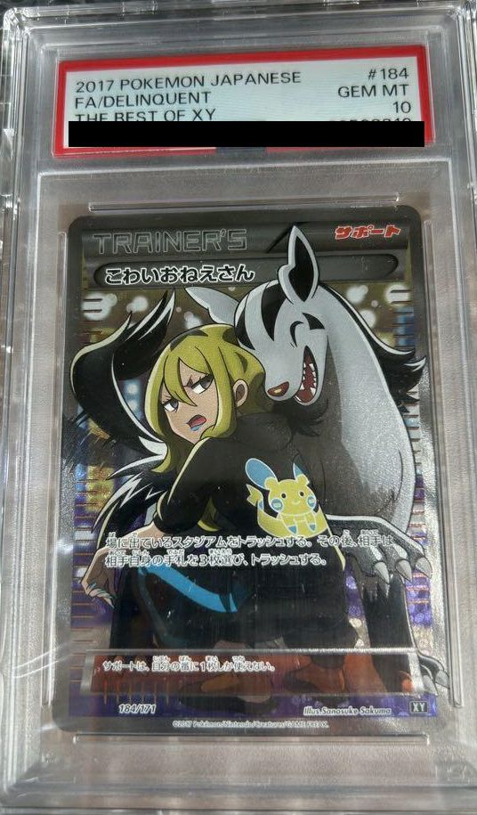 「こわいおねえさん」(184/171)は、ハイクラスパック「THE BEST OF XY」に収録されたサポートカードで、イラストレーターは佐久間さのすけ氏が担当しています。このカードを使用すると、場に出ているスタジアムをトラッシュし、その後、相手は手札から3枚選んでトラッシュします。サポートは自分の番に1枚しか使えません。この効果により、相手の手札を削りつつ、スタジアムを除去する戦略が可能です。