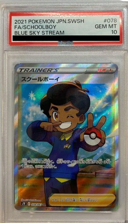 スクールボーイ(078/067)は、拡張パック「蒼空ストリーム」に収録されたサポートカードのスーパーレア(SR)版です。効果は、自分の山札を2枚引き、相手のサイドの残り枚数が5枚・3枚・1枚のいずれかであれば、さらに2枚引くことができます。デッキのドローソースとして活用でき、特にゲーム中盤での手札補充に有効です。SR版のイラストは石川ヒデキ氏が担当しており、爽やかなデザインがコレクターから高い評価を受けています。