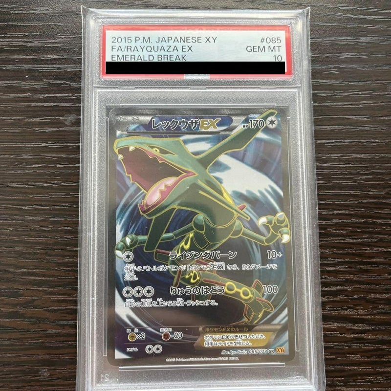 レックウザEX(085/078)[SR]は、2015年3月発売の拡張パック「エメラルドブレイク」に収録された無色タイプのたねポケモンEXです。HPは170で、技「ライジングバーン」は10ダメージを与え、相手のバトルポケモンが「ポケモンEX」の場合、追加で50ダメージを与えます。もう一つの技「りゅうのはどう」は100ダメージを与えますが、自分の山札を上から3枚トラッシュする必要があります。弱点はフェアリータイプ(×2)、抵抗力は闘タイプ(-20)、逃げるためのコストは無色エネルギー1つです。ポケモンEXがきぜつしたとき、相手はサイドを2枚取ります。このカードは、無色エネルギーで技を発動できるため、さまざまなデッキに組み込みやすいアタッカーとして活躍しました。