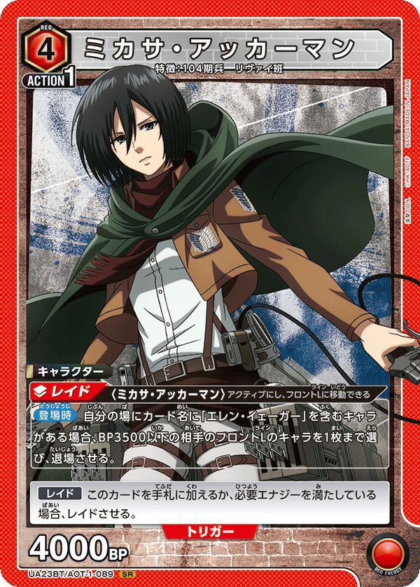 他の画像を見る 販売価格 ¥ 540 〜 ¥ 1,350 税込 販売価格 ¥ 税込 状態A 状態B 状態C 状態D ミカサ・アッカーマン(UA23BT/AOT-1-088)[R★] 商品詳細を見る お気に入りに登録する 在庫切れ