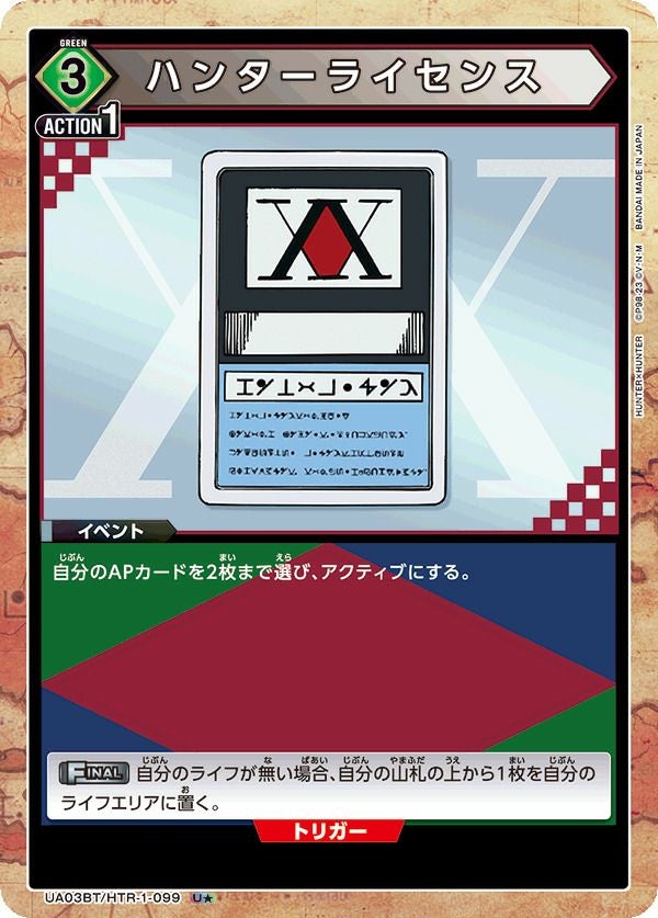 他の画像を見る 販売価格 ¥ 180 〜 ¥ 450 税込 販売価格 ¥ 税込 状態A 状態B 状態C 状態D ハンターライセンス(UA03BT/HTR-1-099)[U★] 商品詳細を見る お気に入りに登録する 在庫切れ