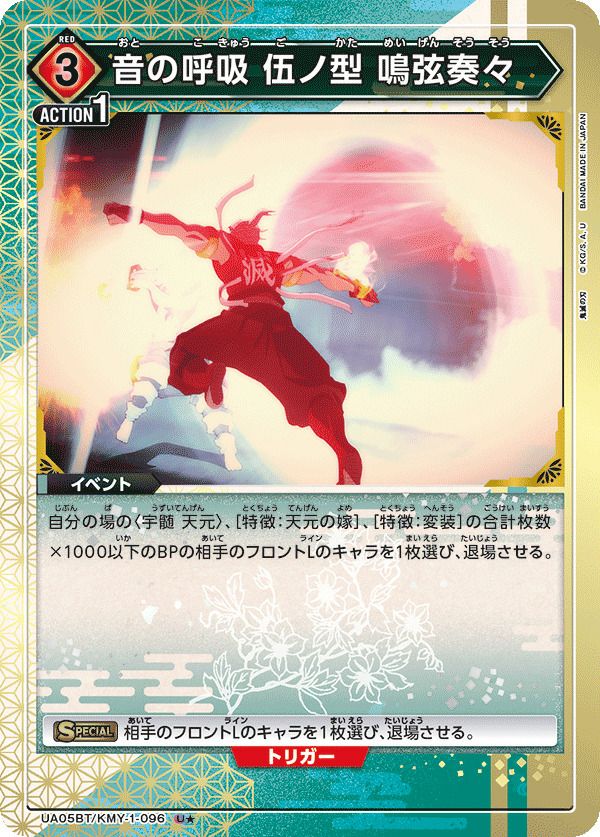 他の画像を見る 販売価格 ¥ 180 〜 ¥ 450 税込 販売価格 ¥ 税込 状態A 状態B 状態C 状態D 音の呼吸 伍ノ型 鳴弦奏々(UA05BT/KMY-1-096)[U★] 商品詳細を見る お気に入りに登録する