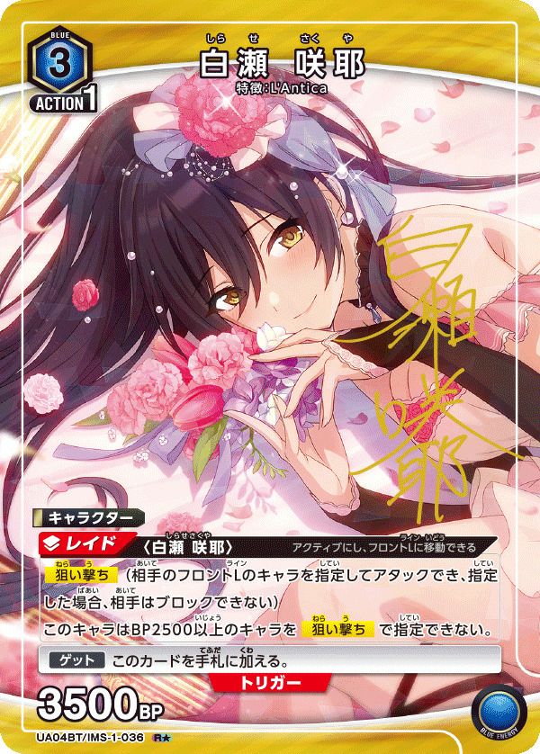 他の画像を見る 販売価格 ¥ 180 〜 ¥ 450 税込 販売価格 ¥ 税込 状態A 状態B 状態C 状態D 白瀬 咲耶(UA04BT/IMS-1-036)[R★] 商品詳細を見る お気に入りに登録する 在庫切れ