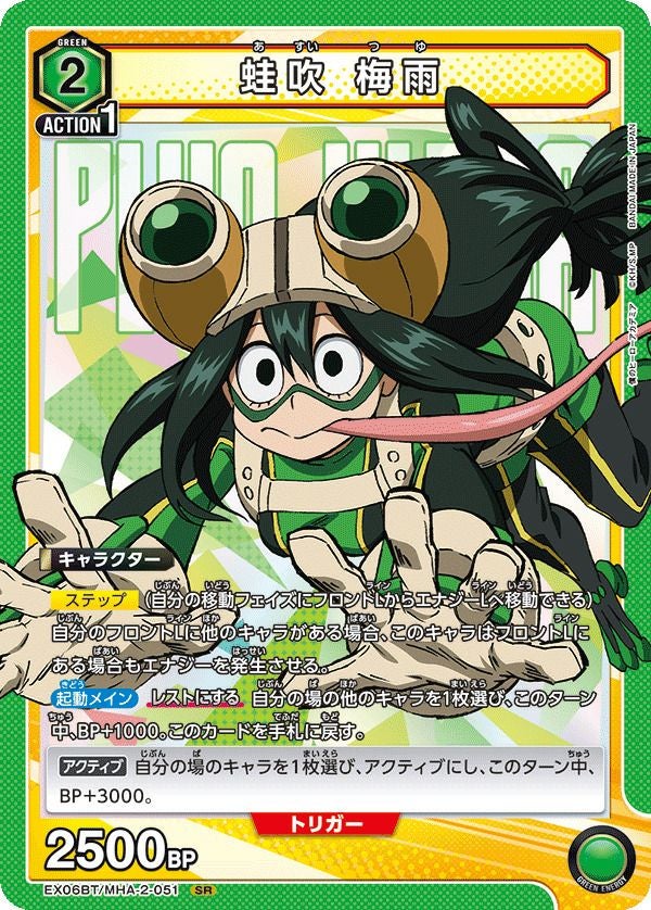 他の画像を見る 販売価格 ¥ 250 〜 ¥ 630 税込 販売価格 ¥ 税込 状態A 状態B 状態C 状態D 蛙吹 梅雨(EX06BT/MHA-2-051)[SR★] 商品詳細を見る お気に入りに登録する 在庫切れ