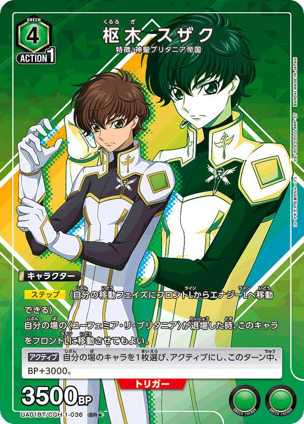他の画像を見る 販売価格 ¥ 460 〜 ¥ 1,170 税込 販売価格 ¥ 税込 状態A 状態B 状態C 状態D 枢木 スザク(UA01BT/CGH-1-036)[SR★] 商品詳細を見る お気に入りに登録する 在庫切れ