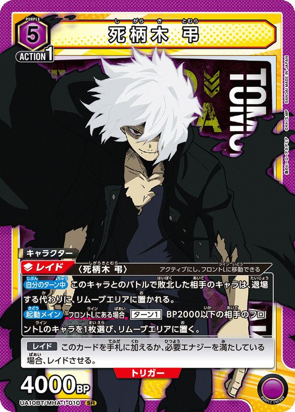 他の画像を見る 販売価格 ¥ 100 〜 ¥ 270 税込 販売価格 ¥ 税込 状態A 状態B 状態C 状態D 死柄木 弔(UA10BT/MHA-1-010)[SR] 商品詳細を見る お気に入りに登録する 在庫切れ