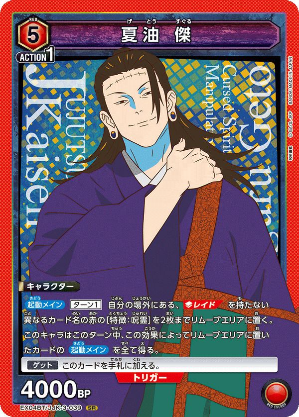 他の画像を見る 販売価格 ¥ 30 〜 ¥ 90 税込 販売価格 ¥ 税込 状態A 状態B 状態C 状態D 夏油 傑(EX04BT/JJK-3-039)[SR] 商品詳細を見る お気に入りに登録する 在庫切れ