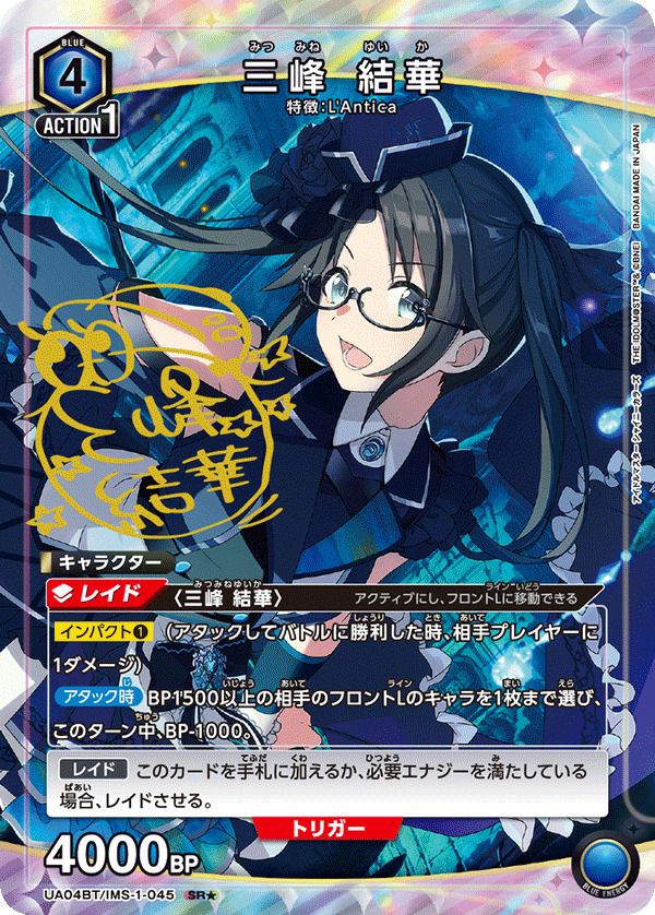 他の画像を見る 販売価格 ¥ 540 〜 ¥ 1,350 税込 販売価格 ¥ 税込 状態A 状態B 状態C 状態D 三峰 結華(UA04BT/IMS-1-045)[SR★] 商品詳細を見る お気に入りに登録する 在庫切れ