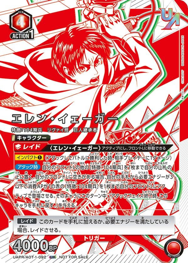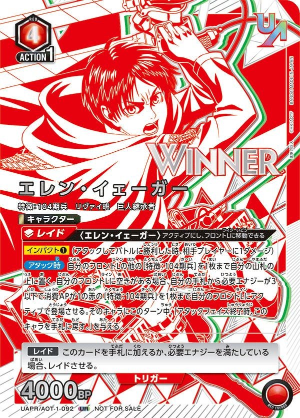 他の画像を見る 販売価格 ¥ 4,960 〜 ¥ 12,420 税込 販売価格 ¥ 税込 状態A 状態B 状態C 状態D エレン・イェーガー(WINNER)(UAPR/AOT-1-092)[UR] 商品詳細を見る お気に入りに登録する 在庫切れ
