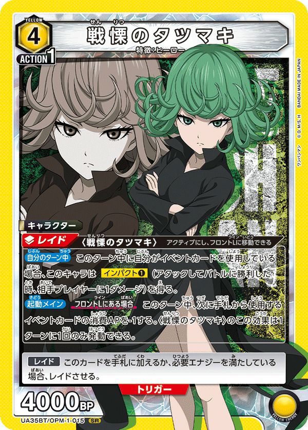 他の画像を見る 販売価格 ¥ 8,210 〜 ¥ 20,520 税込 販売価格 ¥ 税込 状態A 状態B 状態C 状態D 戦慄のタツマキ(UA35BT/OPM-1-015)[SR★★] 商品詳細を見る お気に入りに登録する 在庫切れ