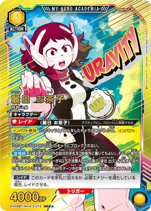 他の画像を見る 販売価格 ¥ 70 〜 ¥ 180 税込 販売価格 ¥ 税込 状態A 状態B 状態C 状態D 麗日 お茶子(EX06BT/MHA-2-012)[SR] 商品詳細を見る お気に入りに登録する 在庫切れ