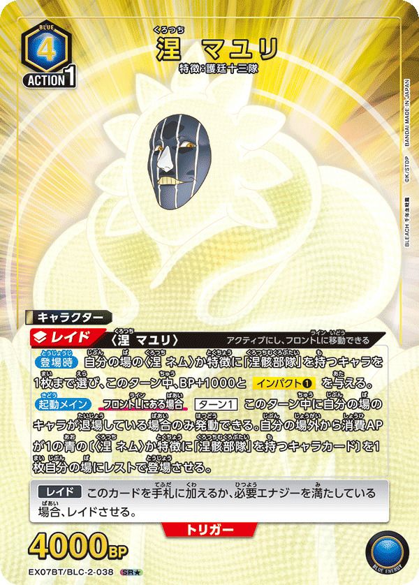 他の画像を見る 販売価格 ¥ 540 〜 ¥ 1,350 税込 販売価格 ¥ 税込 状態A 状態B 状態C 状態D 涅 マユリ(EX07BT/BLC-2-038)[SR★] 商品詳細を見る お気に入りに登録する 在庫切れ