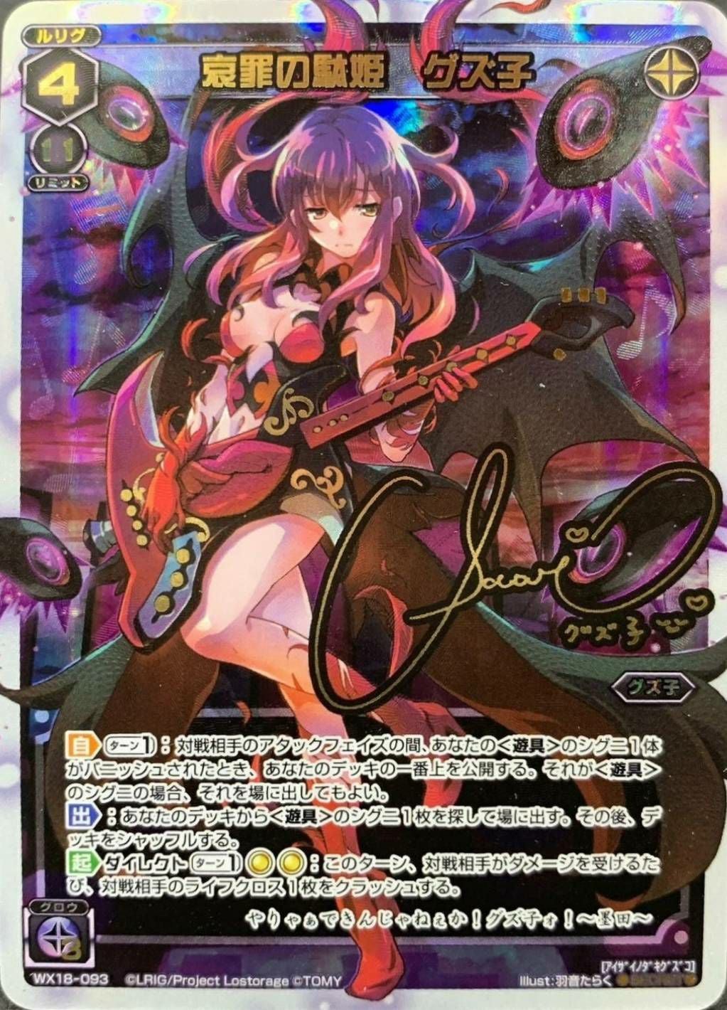 他の画像を見る 販売価格 ¥ 180 〜 ¥ 450 税込 販売価格 ¥ 税込 状態A 状態B 状態C 状態D 無間の闇魔 ウリス(サイン入り)(WX02-082)[SC] 商品詳細を見る お気に入りに登録する 在庫切れ