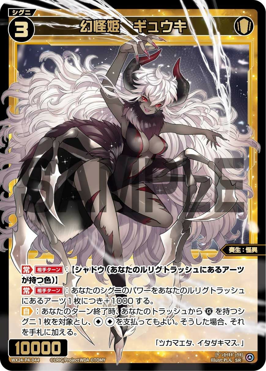 他の画像を見る 販売価格 ¥ 150 〜 ¥ 370 税込 販売価格 ¥ 税込 状態A 状態B 状態C 状態D 幻怪姫 ギュウキ(WX24-P4-044)[SR] 商品詳細を見る お気に入りに登録する 在庫切れ