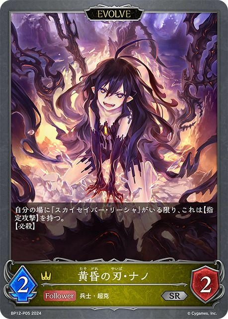 他の画像を見る 販売価格 ¥ 200 〜 ¥ 490 税込 販売価格 ¥ 税込 状態A 状態B 状態C 状態D 黄昏の刃・ナノ(BP12-P04)[SR・プレミアム] 商品詳細を見る お気に入りに登録する 在庫切れ