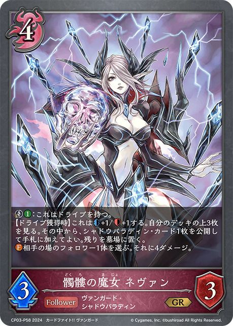 他の画像を見る 販売価格 ¥ 90 〜 ¥ 230 税込 販売価格 ¥ 税込 状態A 状態B 状態C 状態D 髑髏の魔女 ネヴァン(CP03-P58)[GR・プレミアム] 商品詳細を見る お気に入りに登録する 在庫切れ