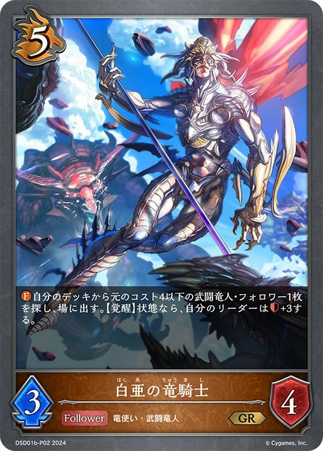 他の画像を見る 販売価格 ¥ 160 〜 ¥ 400 税込 販売価格 ¥ 税込 状態A 状態B 状態C 状態D 白亜の竜騎士(DSD01b-P02)[GR・プレミアム] 商品詳細を見る お気に入りに登録する 在庫切れ