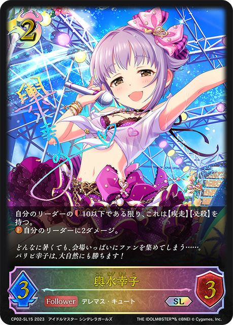 他の画像を見る 販売価格 ¥ 2,030 〜 ¥ 5,080 税込 販売価格 ¥ 税込 状態A 状態B 状態C 状態D 輿水幸子(CP02-SP10)[SP] 商品詳細を見る お気に入りに登録する 在庫切れ