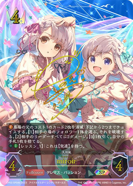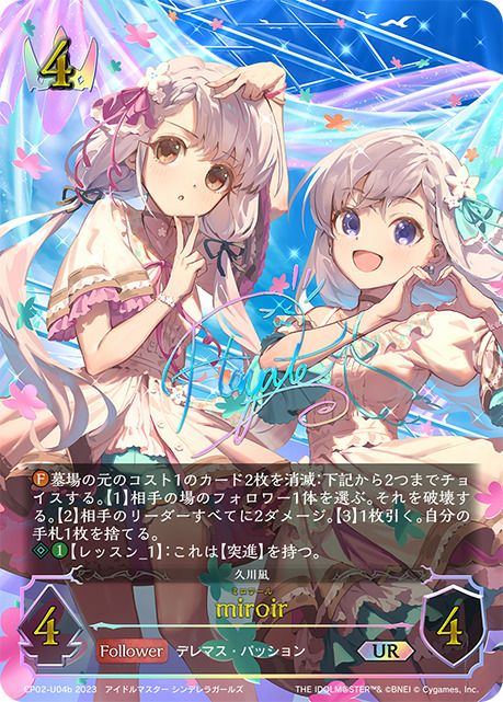 他の画像を見る 販売価格 ¥ 1,350 〜 ¥ 3,380 税込 販売価格 ¥ 税込 状態A 状態B 状態C 状態D miroir(CP02-U04a)[UR] 商品詳細を見る お気に入りに登録する 在庫切れ