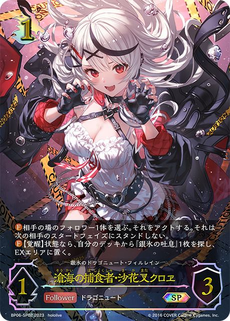他の画像を見る 販売価格 ¥ 5,370 〜 ¥ 13,430 税込 販売価格 ¥ 税込 状態A 状態B 状態C 状態D 滄海の捕食者・沙花叉クロヱ(BP06-SP02)[SP] 商品詳細を見る お気に入りに登録する 在庫切れ