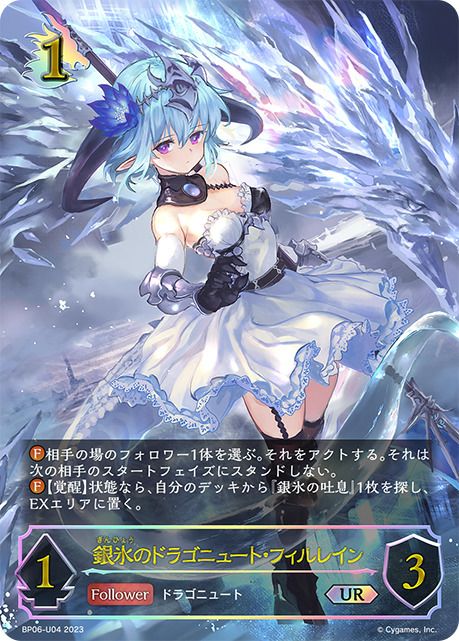 他の画像を見る 販売価格 ¥ 160 〜 ¥ 400 税込 販売価格 ¥ 税込 状態A 状態B 状態C 状態D 銀氷のドラゴニュート・フィルレイン(BP06-SL12)[SL] 商品詳細を見る お気に入りに登録する 在庫切れ