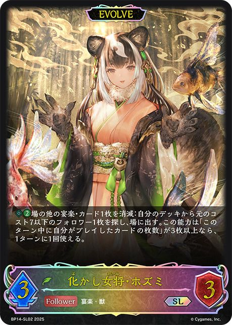 他の画像を見る 販売価格 ¥ 160 〜 ¥ 400 税込 販売価格 ¥ 税込 状態A 状態B 状態C 状態D 化かし女将・ホズミ(BP14-SL01)[SL] 商品詳細を見る お気に入りに登録する 在庫切れ