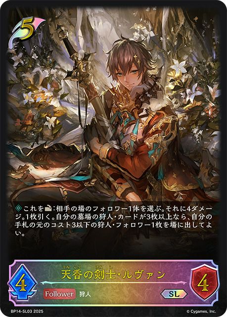 他の画像を見る 販売価格 ¥ 130 〜 ¥ 320 税込 販売価格 ¥ 税込 状態A 状態B 状態C 状態D 天香の剣士・ルヴァン(BP14-SL03)[SL] 商品詳細を見る お気に入りに登録する 在庫切れ
